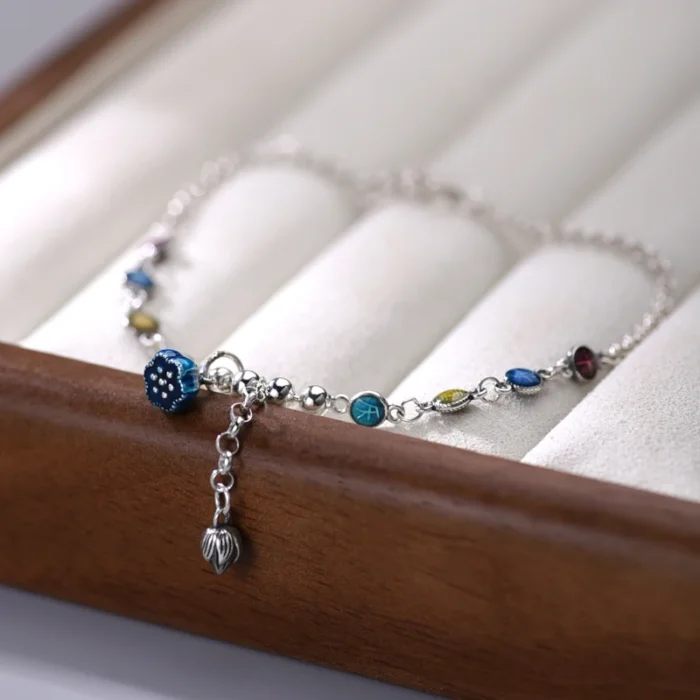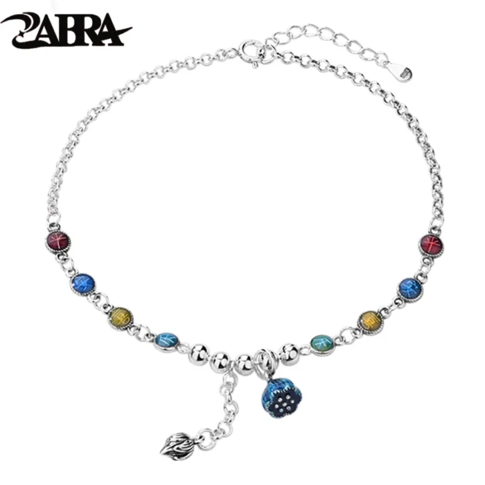 ZABRA 925 Silver South Red Bell Foot Chain Female Style Sexy Beaded Foot Ring Female Foot Chain New Style